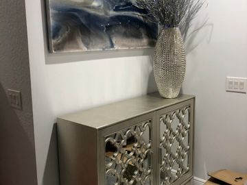I enjoy working with resin and acrylic paints. I like to do something that you do not need a plan... That makes the best art for walls. I look for that right consistency, move the colors around and see what the paintings become. I truly enjoy not having any plan. I love how messy it can be and how much the art changes as it dries.